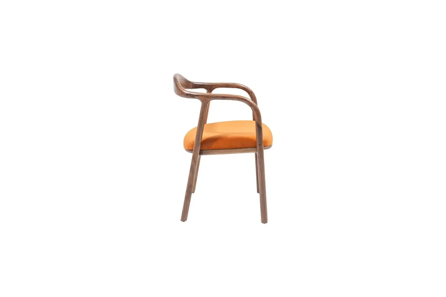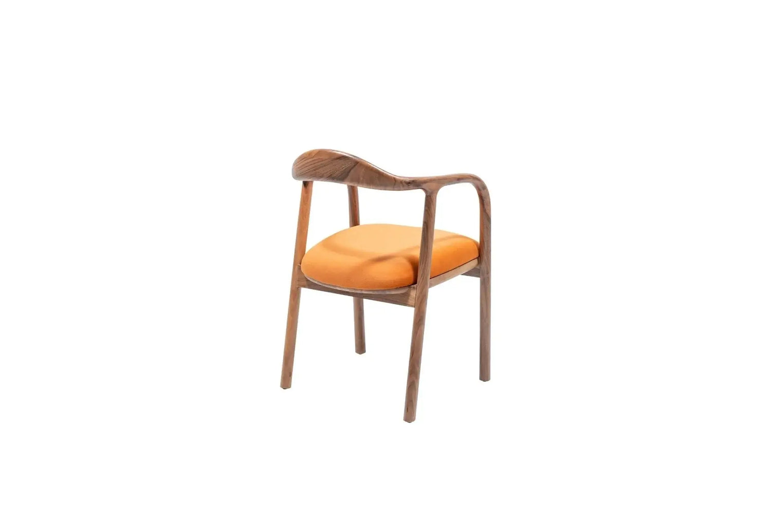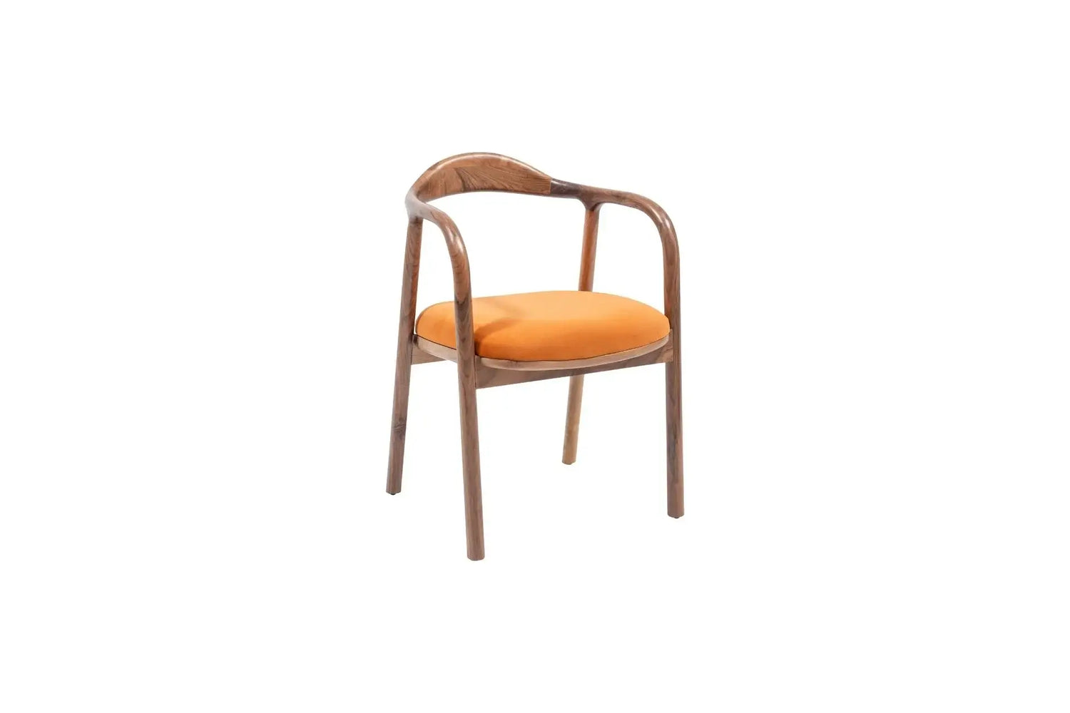 Add a touch of modern elegance to your space with the Contemporary Curve Armchair. This beautifully crafted chair features a smooth, curved wooden frame that is both sturdy and stylish. The frameโs natural wood finish enhances its sleek, modern aesthetic, making it a perfect fit for any contemporary home or office decor. The chairโs seat is upholstered in vibrant orange fabric, adding a pop of color and a cozy feel. The padded seat ensures comfort, while the ergonomically curved backrest and armrests provide additional support, making this chair ideal for both dining and casual lounging.