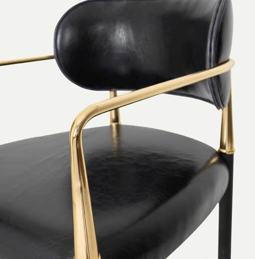 Indulge in the epitome of luxury and elegance with the Lux Royale Bar Stool. This sophisticated stool is crafted with a striking combination of black leather and gleaming gold accents, designed to bring a touch of opulence to any bar or high table setting. The stool features a sturdy frame with a sleek black finish, complemented by a plush, padded seat and backrest upholstered in high-quality black leather. The gold-toned armrests and footrest add a glamorous flair while ensuring maximum comfort and support.