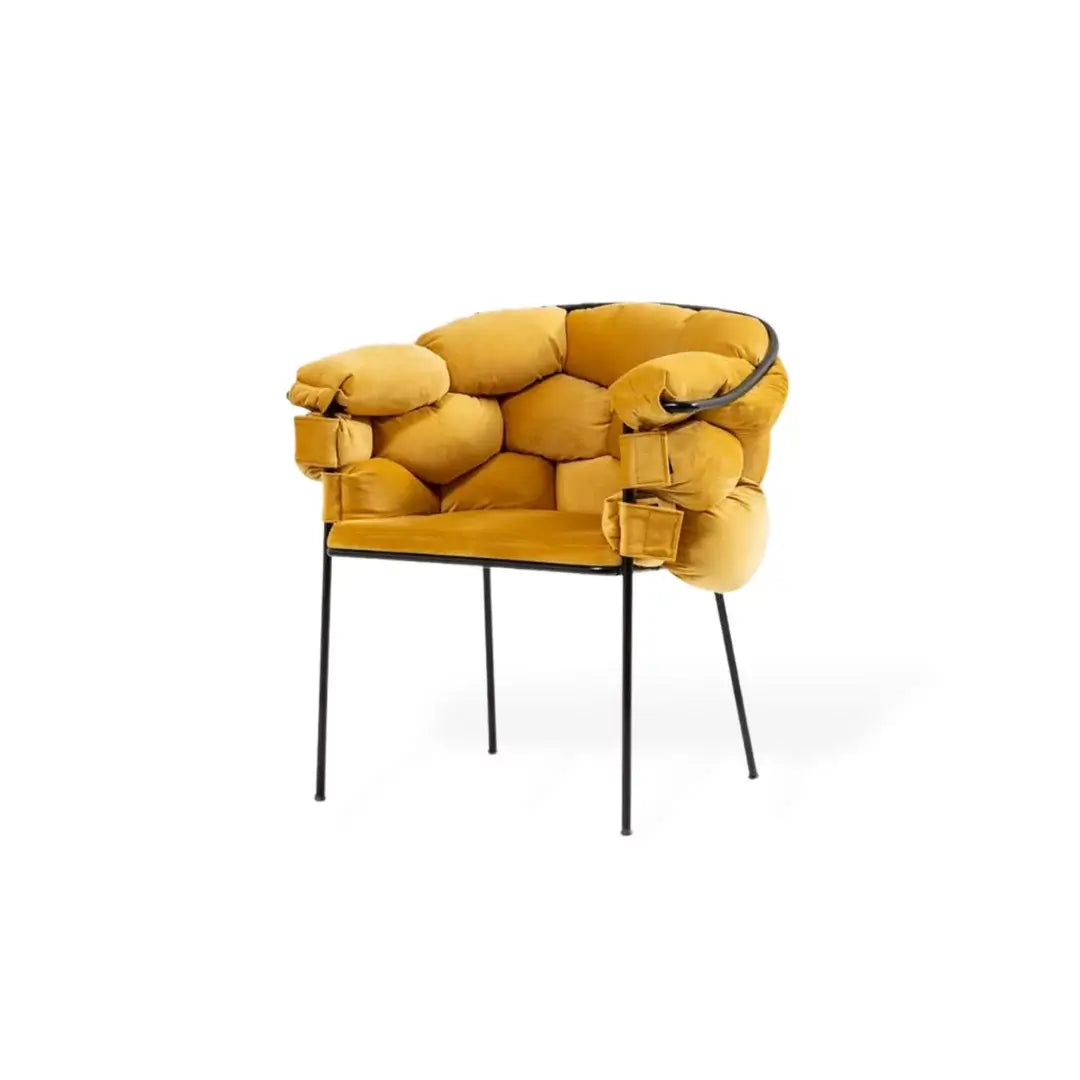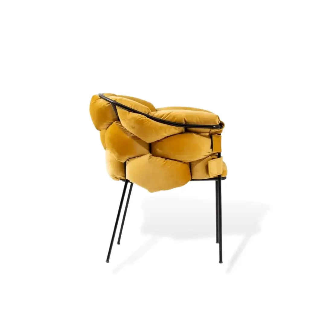 This luxurious armchair is perfect for those who appreciate fine craftsmanship and modern design. Its distinctive mustard yellow color adds a vibrant touch to any room, while the high-quality materials ensure it remains a cherished piece of furniture for years to come.