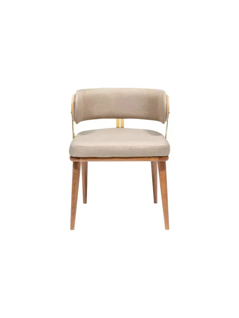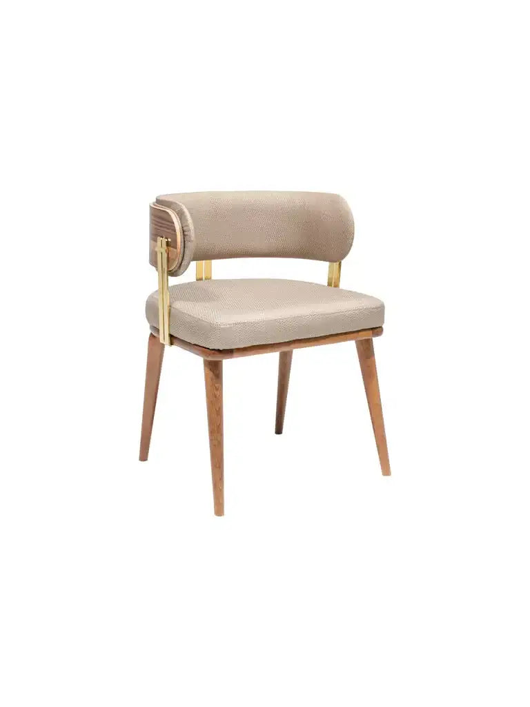 - Elegant Design: The chair features a sleek, curved backrest supported by brass brackets, providing both aesthetic beauty and structural integrity. The curved backrest is complemented by a padded seat and back, upholstered in a high-quality, textured fabric that ensures maximum comfort.