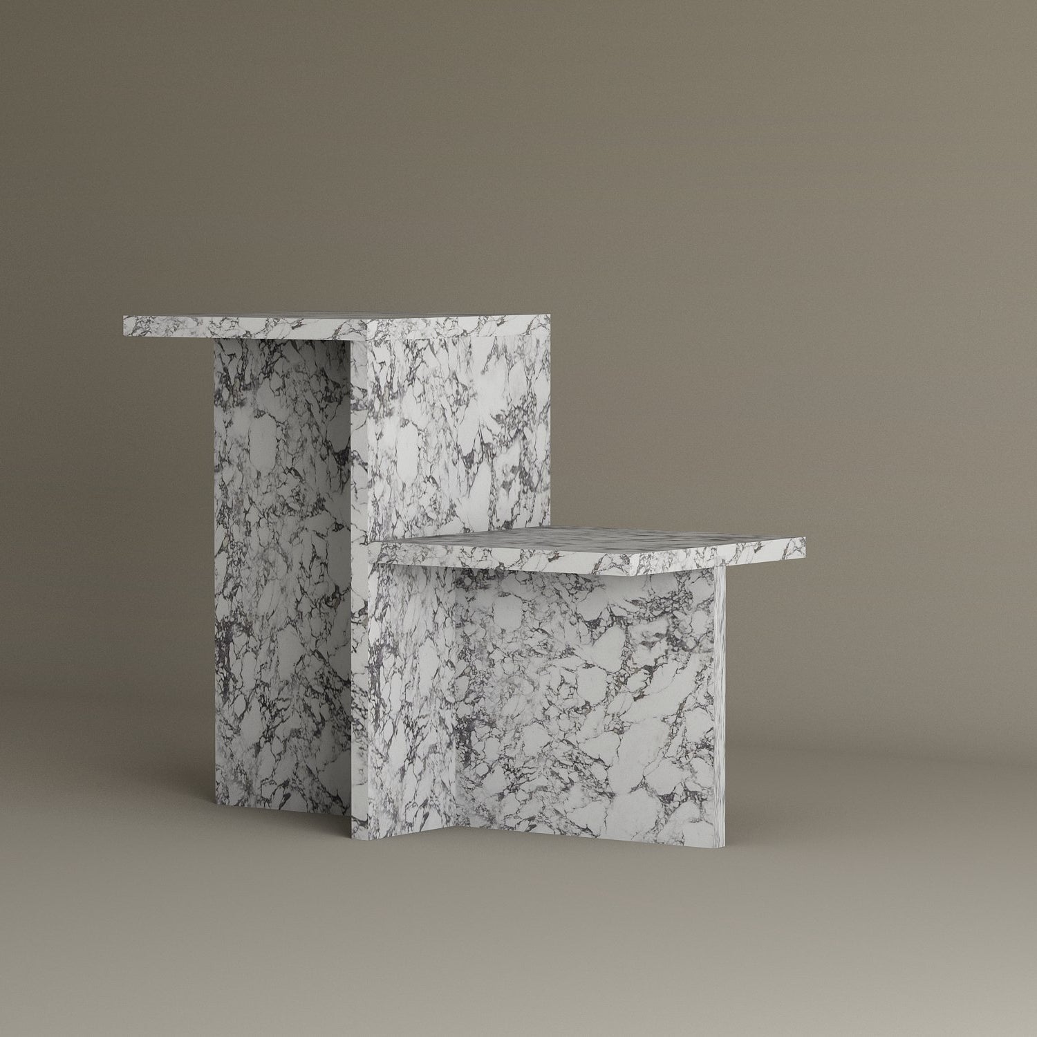 Tiered Calacatta Viola Marble Table Set is backordered and will ship in 10 business days.