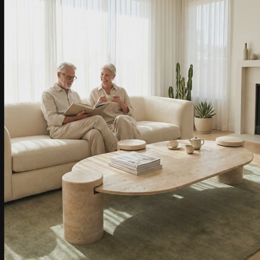 We understand that choosing a travertine coffee table is both a creative and financial investment. Each travertine coffee table is made to order, shaped in your preferred stone, scale, and proportion. From the calm warmth of travertine to the striking veining of Calacatta Viola, every piece is built to last and made uniquely yours.