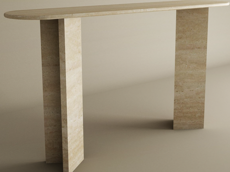 Ovale Travertine Console Table with Vertical Groove Base β Organic Stone Base