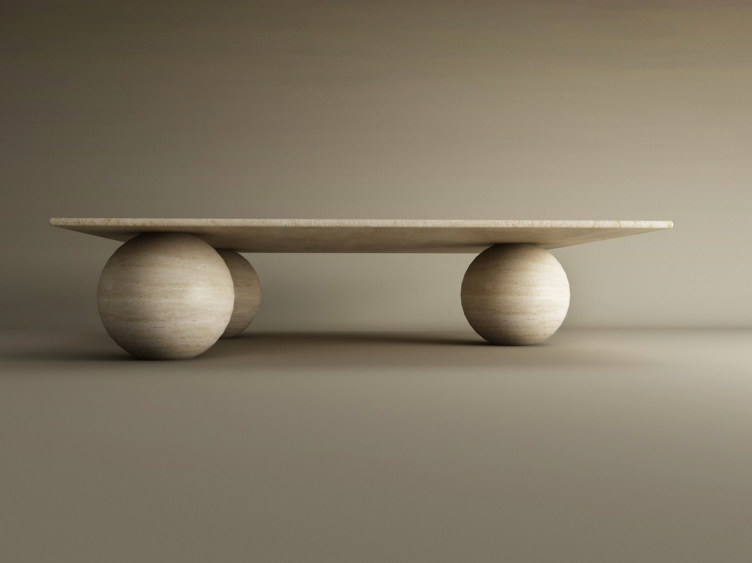 This square travertine coffee table pairs a clean, refined top with sculptural stone ball bases that bring a subtle sense of movement and organic presence to your home. Sized at 43 x 43 x 14 inches (110 x 110 x 36 cm), it’s crafted to turn everyday moments into rituals of quiet sophistication and natural beauty.