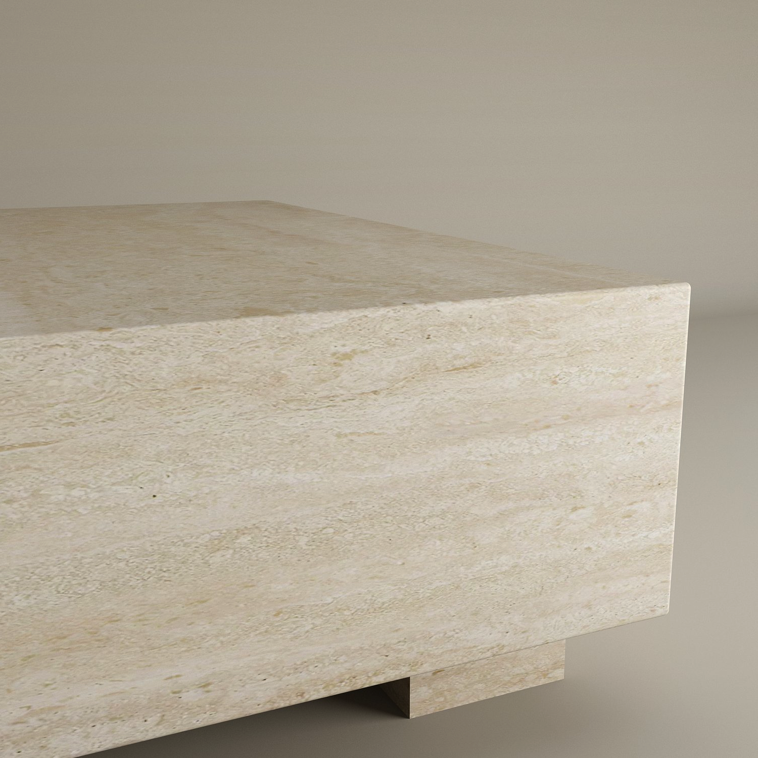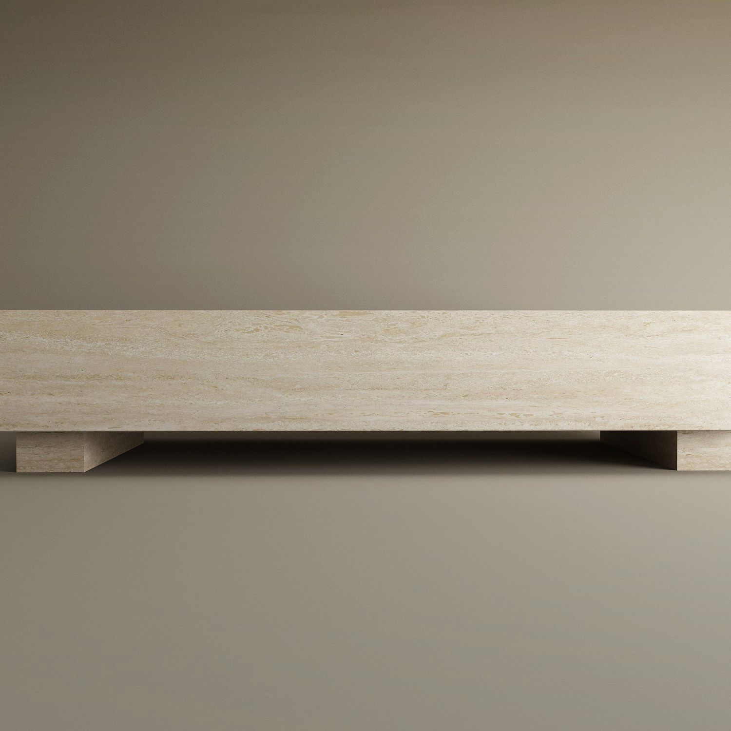 This rectangular travertine coffee table combines understated elegance with the warm veining of natural stone. Anchored by a hidden base, it measures 31 x 67 inches (80 x 170 cm) and invites both quiet reflection and gathering. Hand-finished and crafted from solid travertine, it brings organic beauty and lasting quality to your home. A timeless piece for your living space, designed to be cherished for years to come.