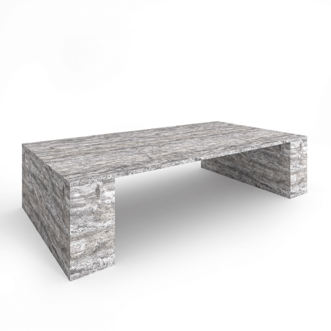 Silver Travertine Modern Coffee Table – Contemporary Coffee Table with a Striking Stone Surface