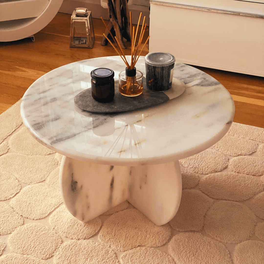- Crafted from a single block of organic stone, each table showcases unique textures and patterns, ensuring no two pieces are alike.