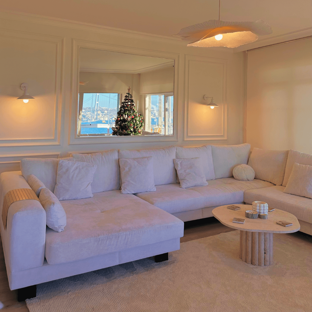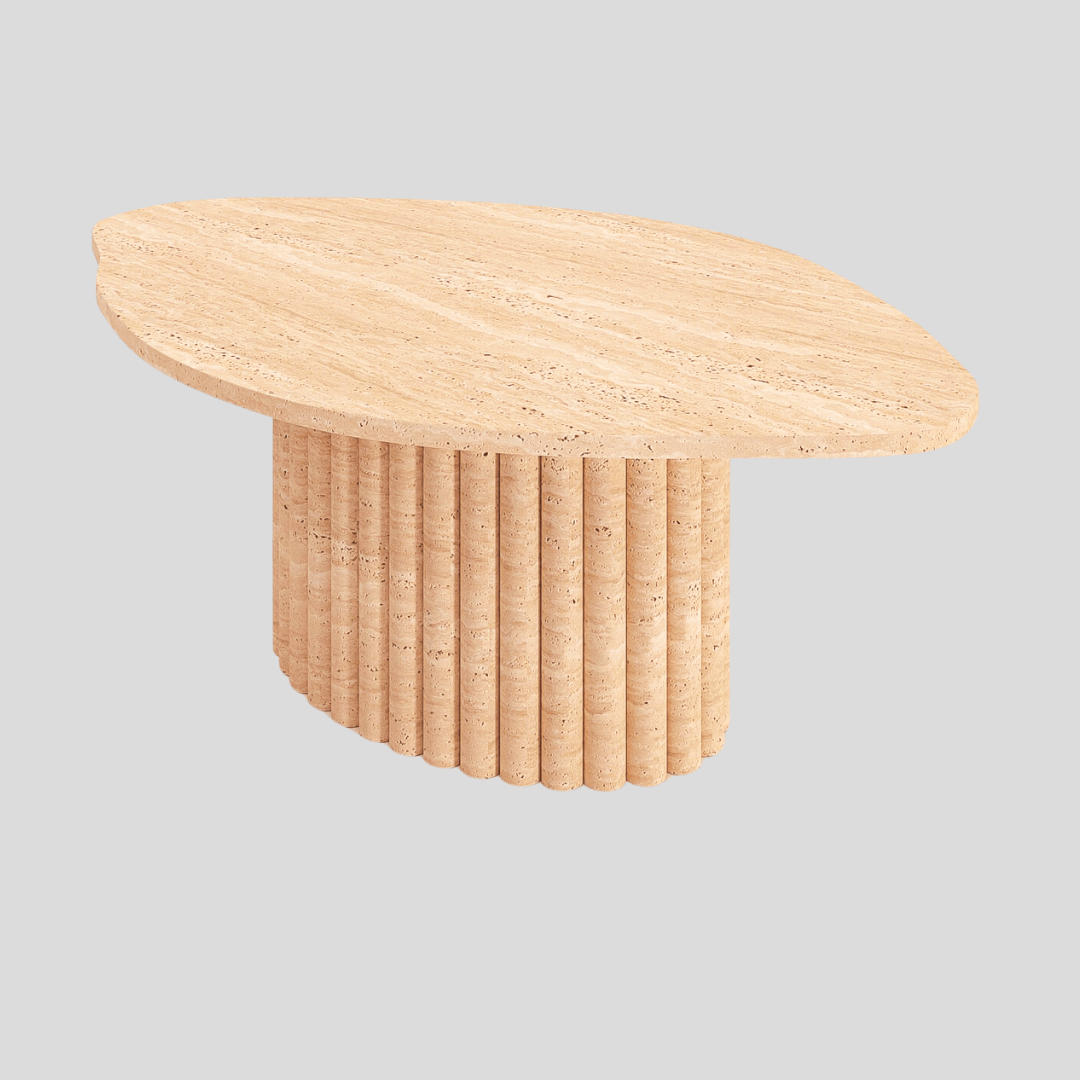 Crafted from the highest quality travertine, the coffee table exudes a warmth that only natural stone can provide. Each column is meticulously carved, allowing shadows to play across the surface, creating a dynamic interplay of light and texture throughout the day.
