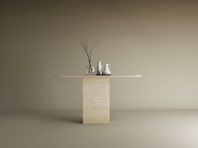 Ovale Travertine Console Table with Block Base – Natural Stone Base