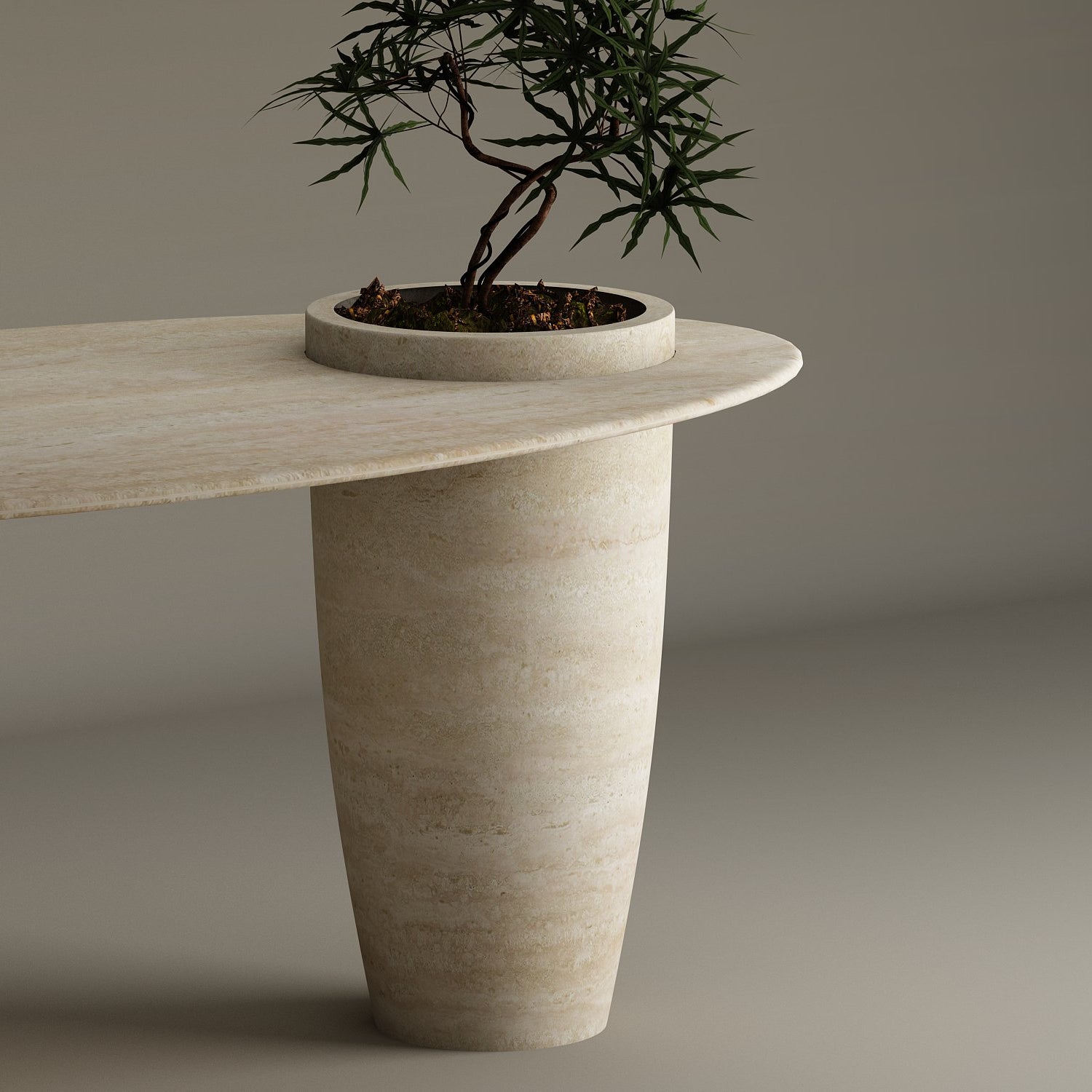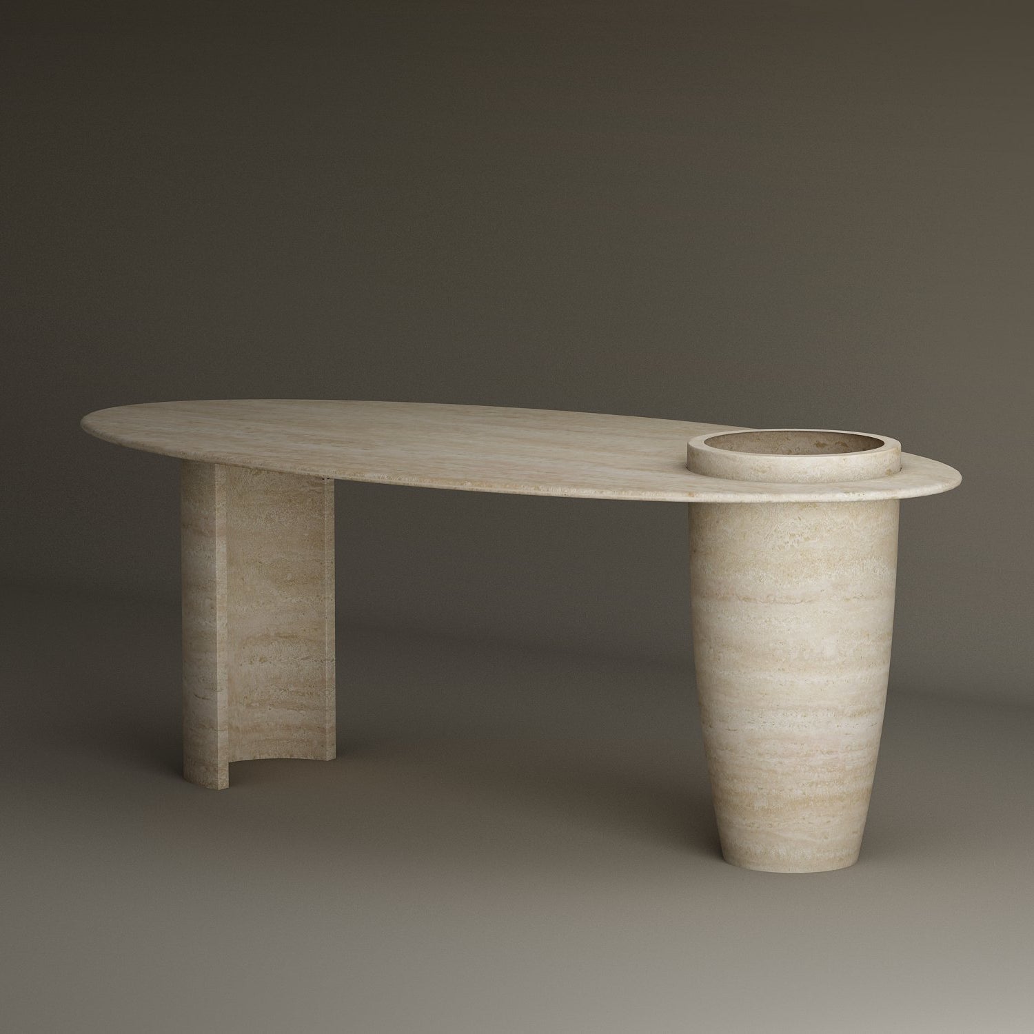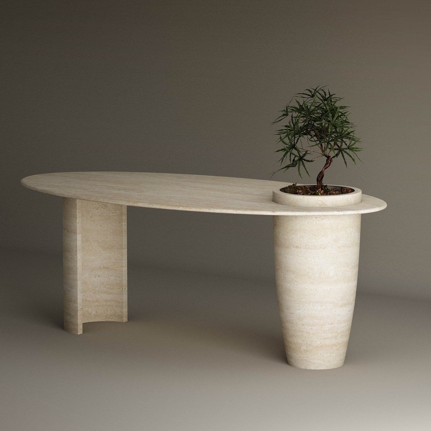 Versatile Travertine Office and Dining Table with Built-in Vase