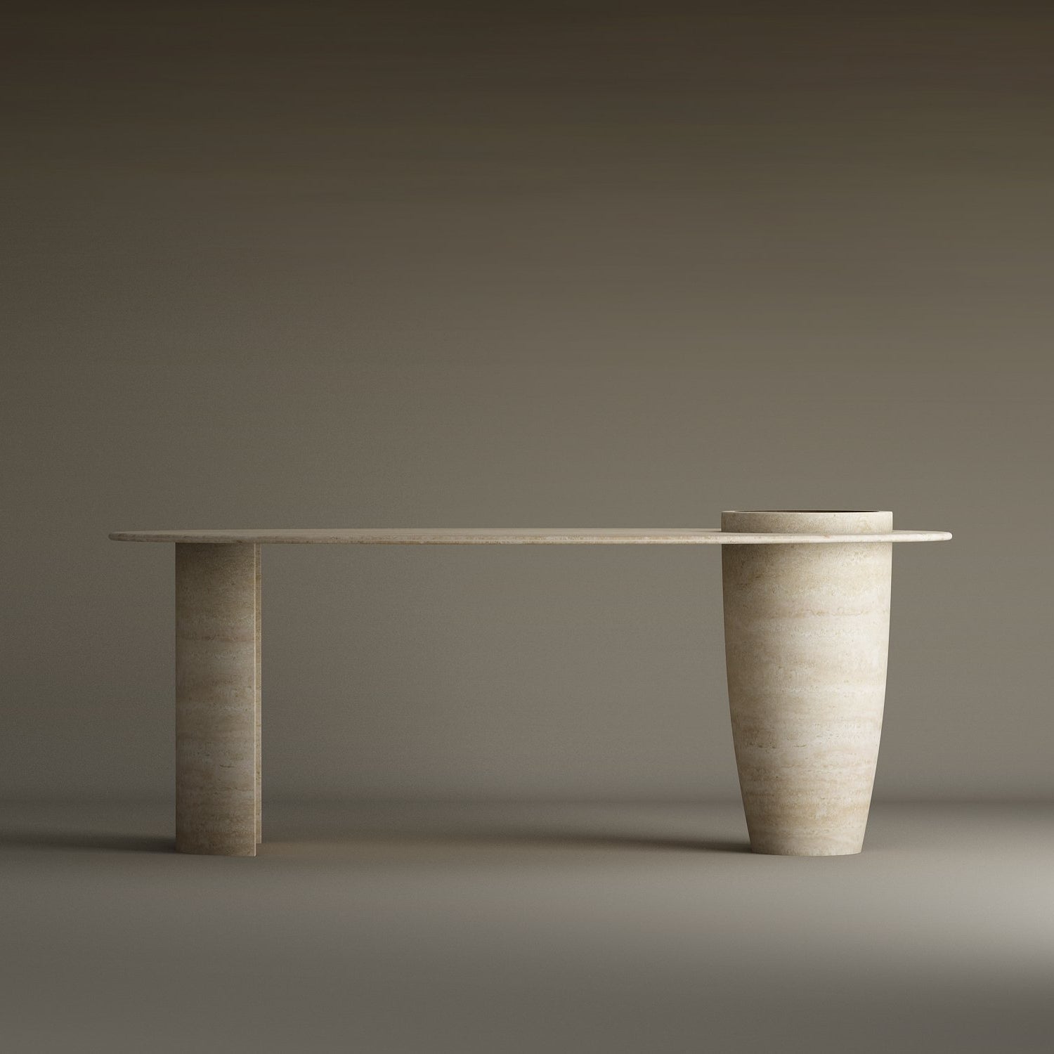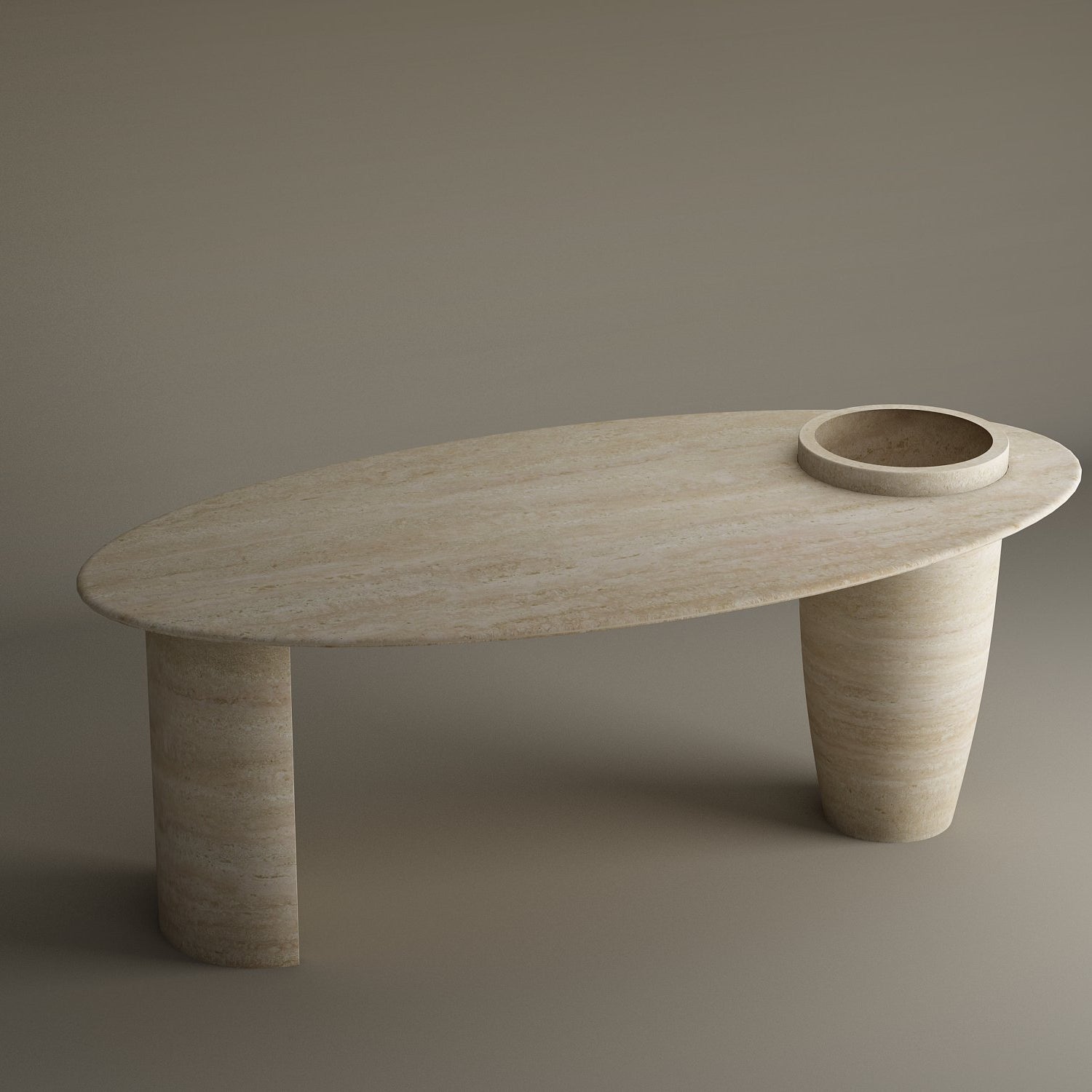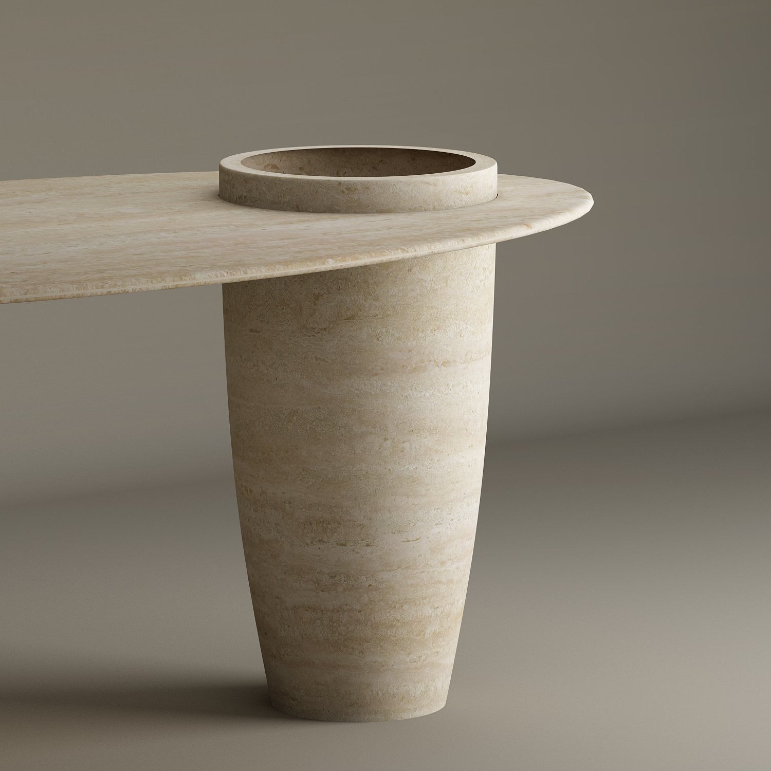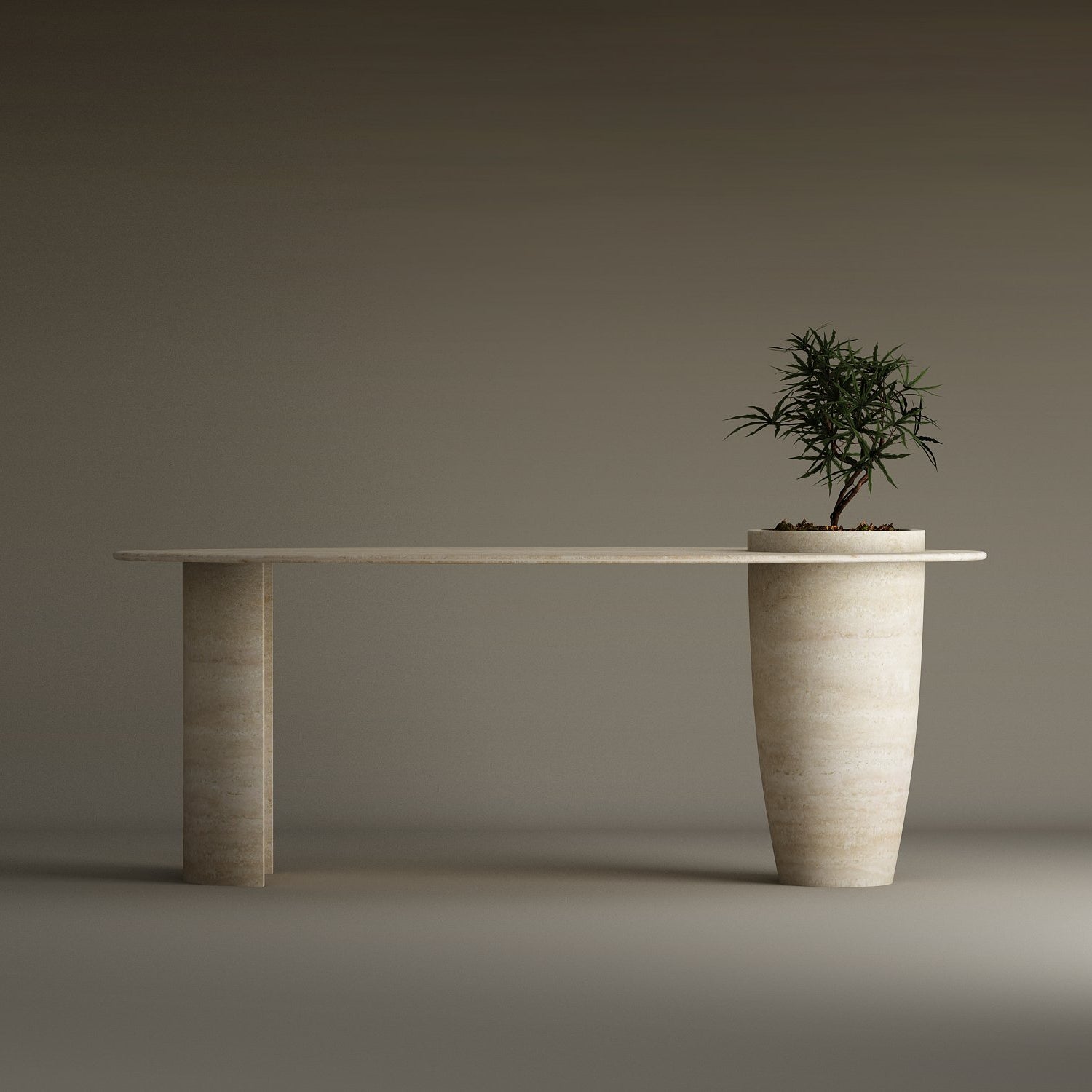 Versatile Travertine Office and Dining Table with Built-in Vase