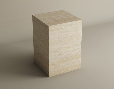 Monolith Elegance Travertine Side Table – Solid Block Design with Minimalist Refinement
