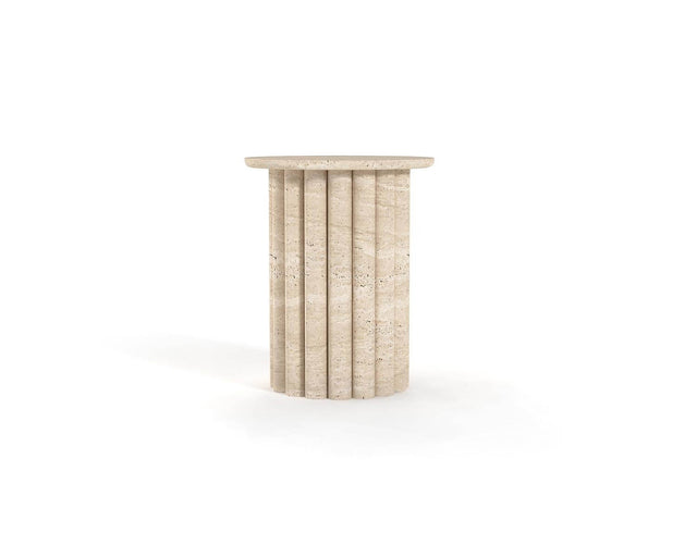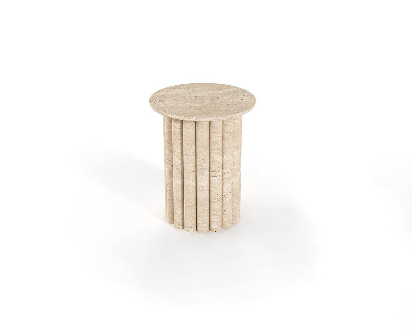 Corinthian Column Travertine Table – Timeless Pillar-Inspired Stone Accent Piece