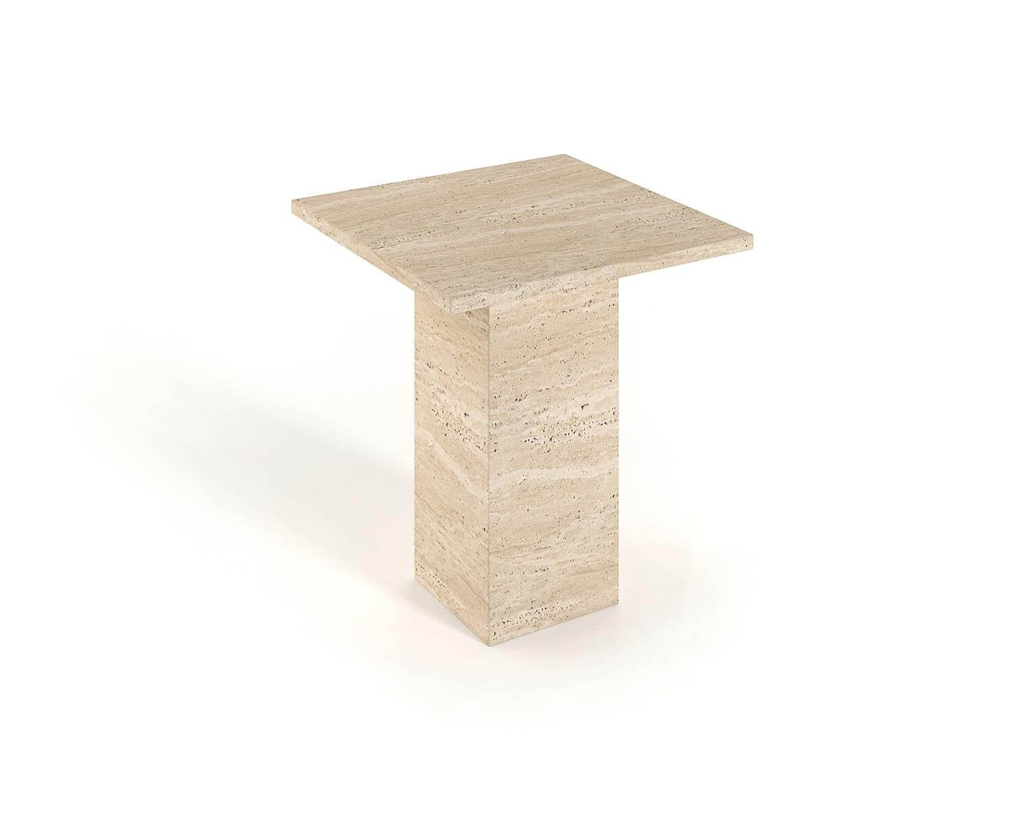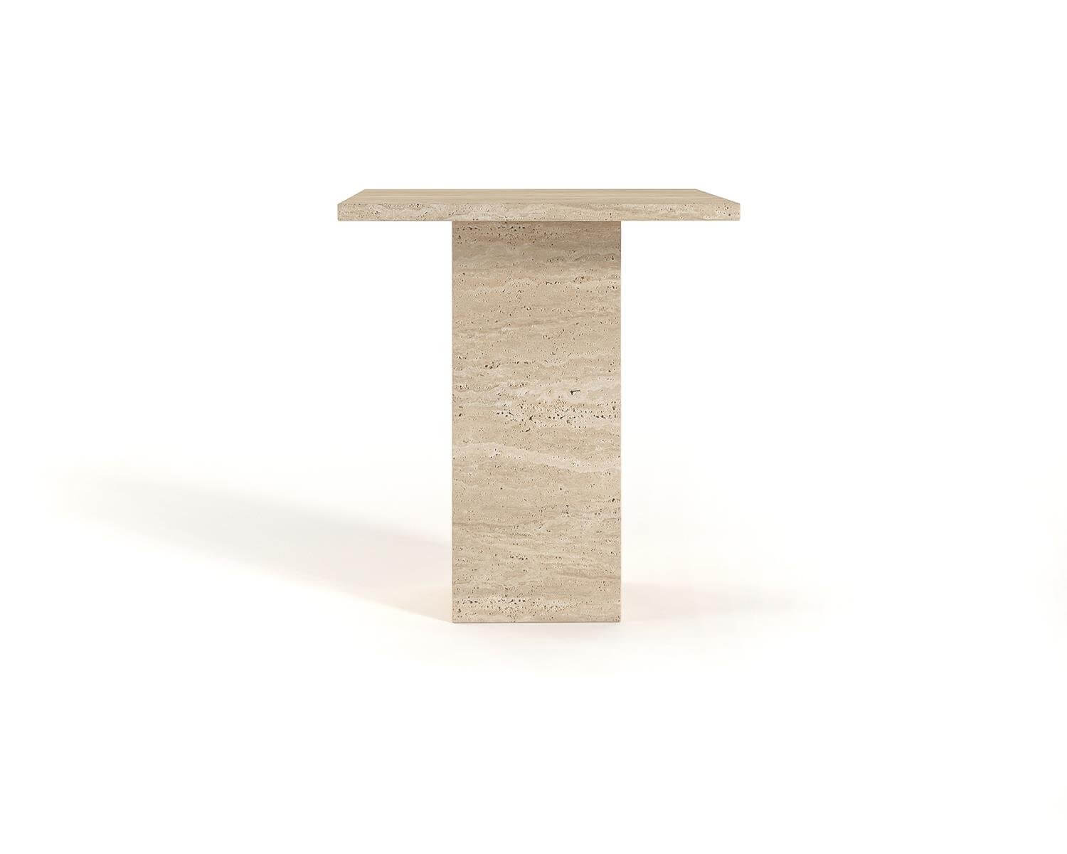 Monolith Elegance Travertine Side Table – Solid Block Design with Minimalist Refinement