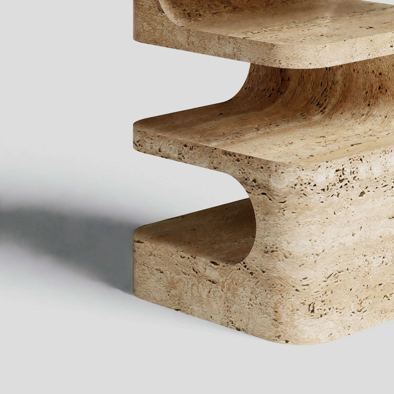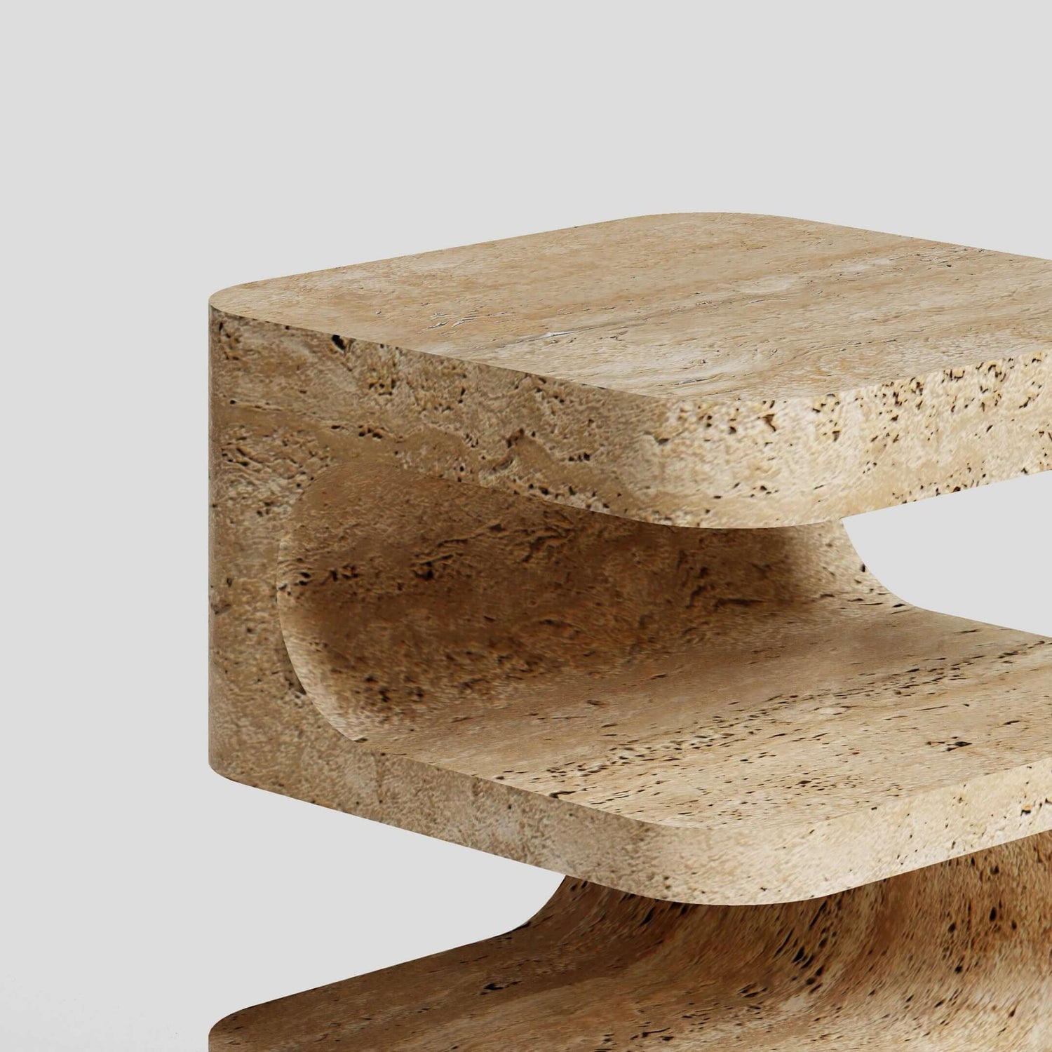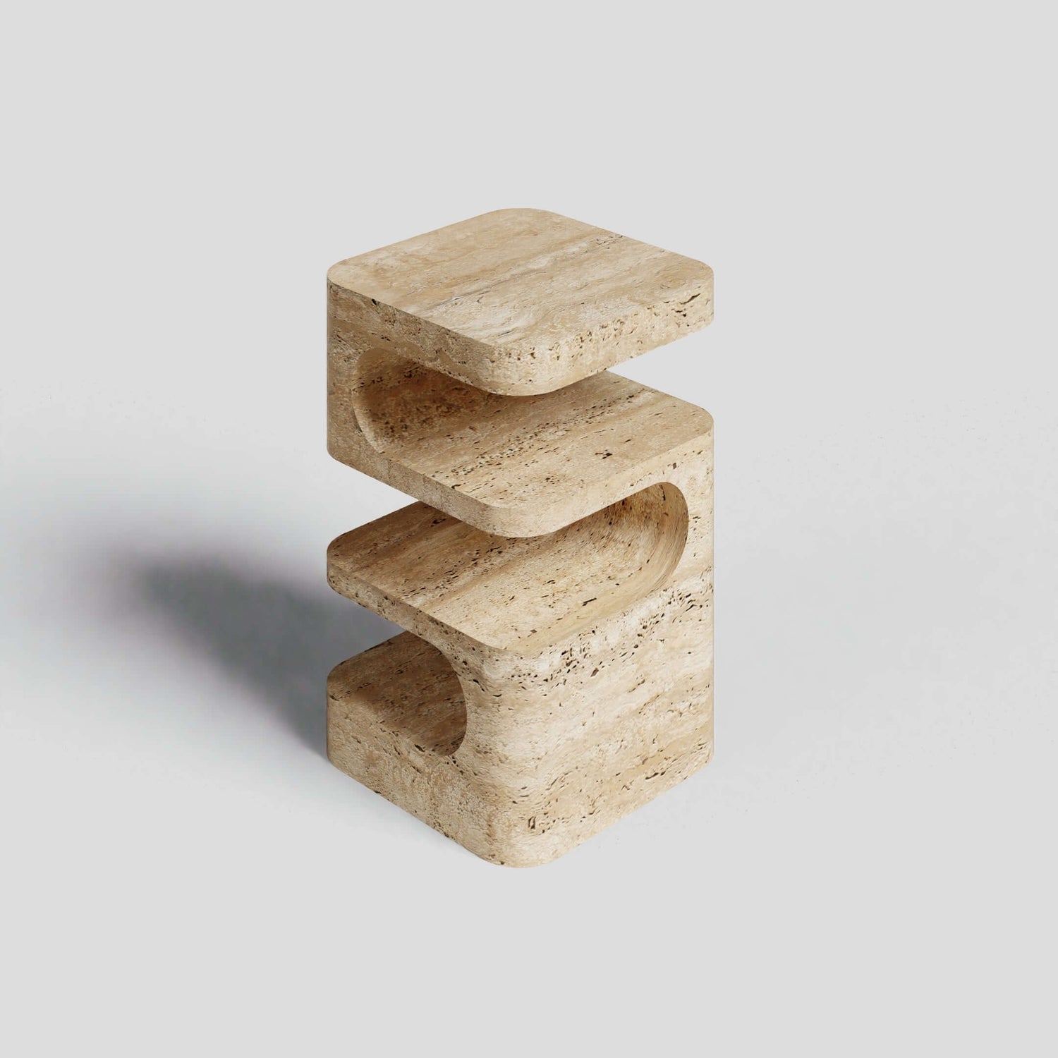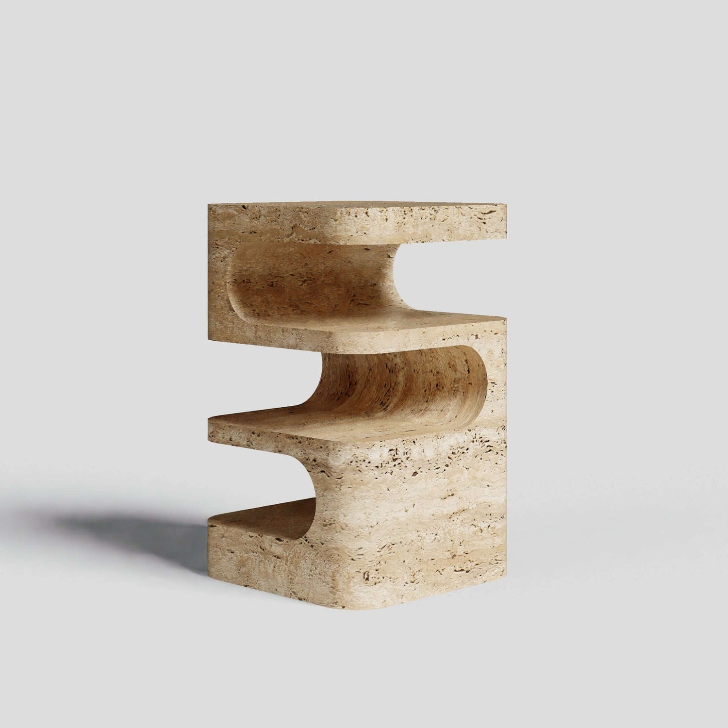 Carved from 100% organic travertine, the Serenity Block Table is an artistic marvel that blends raw natural beauty with architectural mastery. Its sculpted shelves create an interplay of light, shadow, and texture, echoing the gentle erosion of wind over stone. Whether adorned with books, art pieces, or left untouched as a standalone sculpture, it commands attention while exuding tranquility and balance.