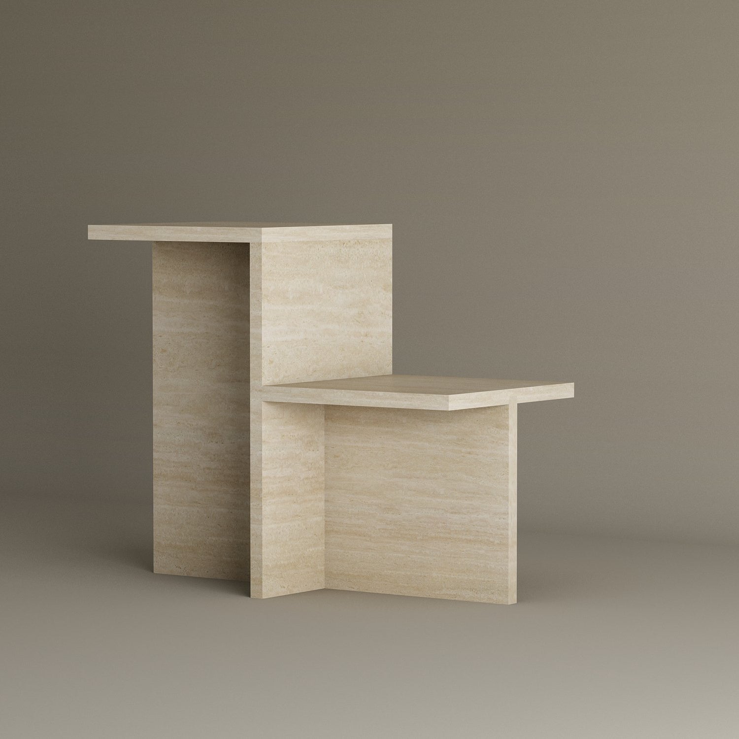 Travertine Tiered Side Table Set – Sculptural Nesting Tables in Natural Stone