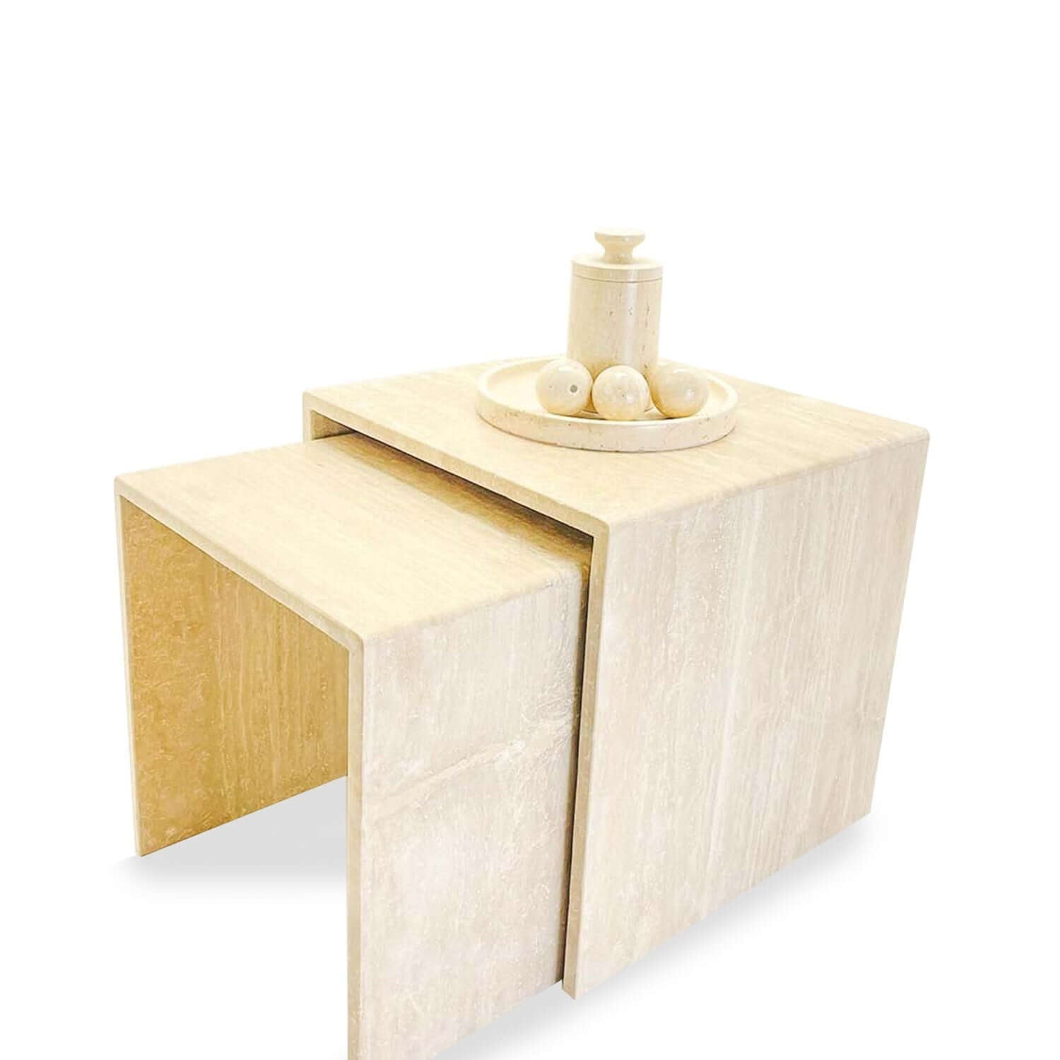 Eco-Conscious Choice: Travertine is an environmentally friendly material, making the Harmony Nest Tables a sustainable furniture choice for the eco-aware homeowner.