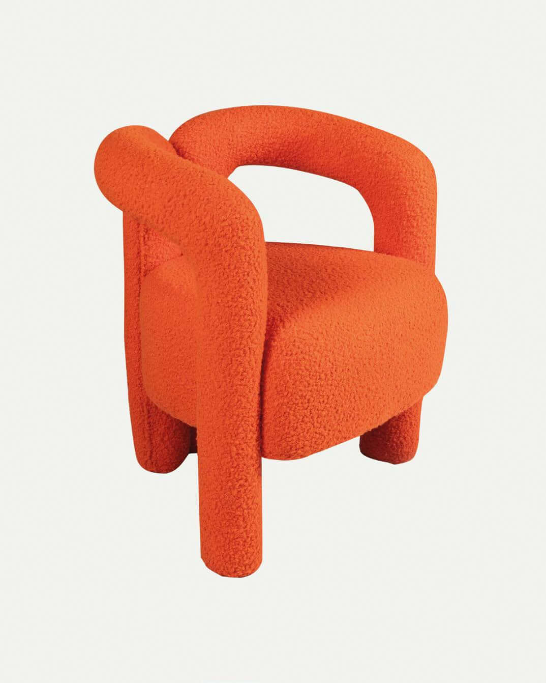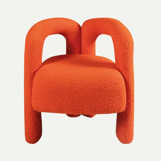 Make a striking statement with the Bold Bliss Lounge Chair, an epitome of modern artistry and comfort. This chair is meticulously designed to offer both visual appeal and a cozy seating experience. The chair features an avant-garde frame covered entirely in vibrant orange, textured fabric that brings a pop of color and a touch of playfulness to any room. Its unique design with flowing, curved lines provides not just a stunning aesthetic but also ergonomic support, making it perfect for relaxing or entertaining guests.Β