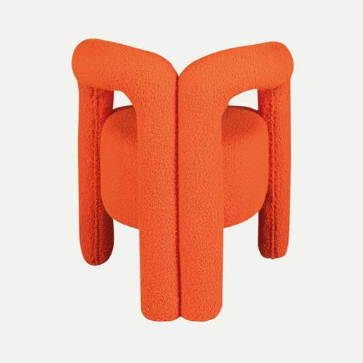 - Vibrant orange, textured fabric upholstery