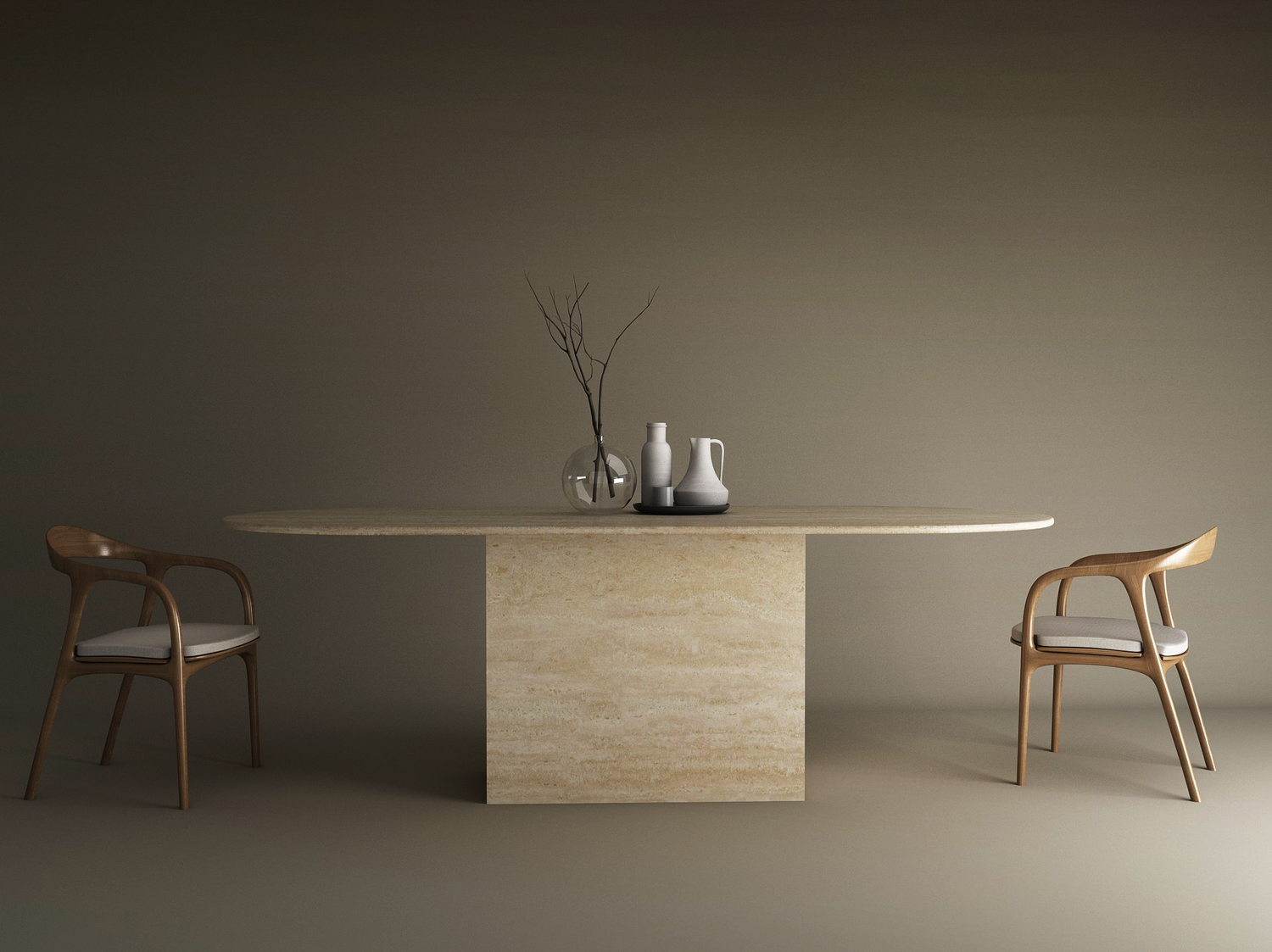 Oval Travertine Dining Table with Block Base