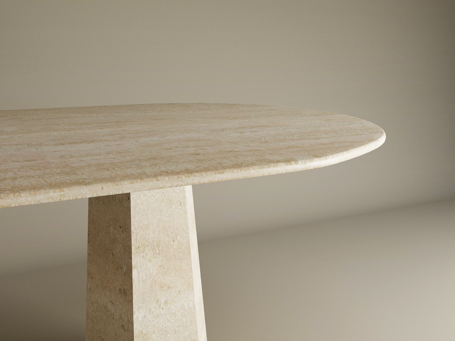 The solid stone base grounds the piece in enduring strength, making it more than just a table—it’s a part of your family’s story. Crafted from solid travertine, it’s built to last for decades, ready to become an heirloom piece that carries your memories to future generations.