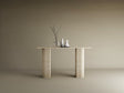 Rectangular Travertine Console Table with Fluted Round Base – Solid Travertine Stone Base