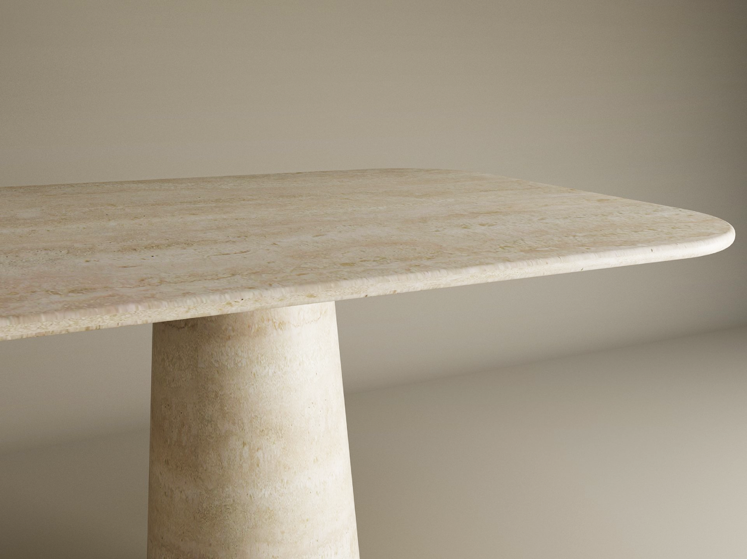Rectangular Travertine Dining Table with Conical Pedestal Base