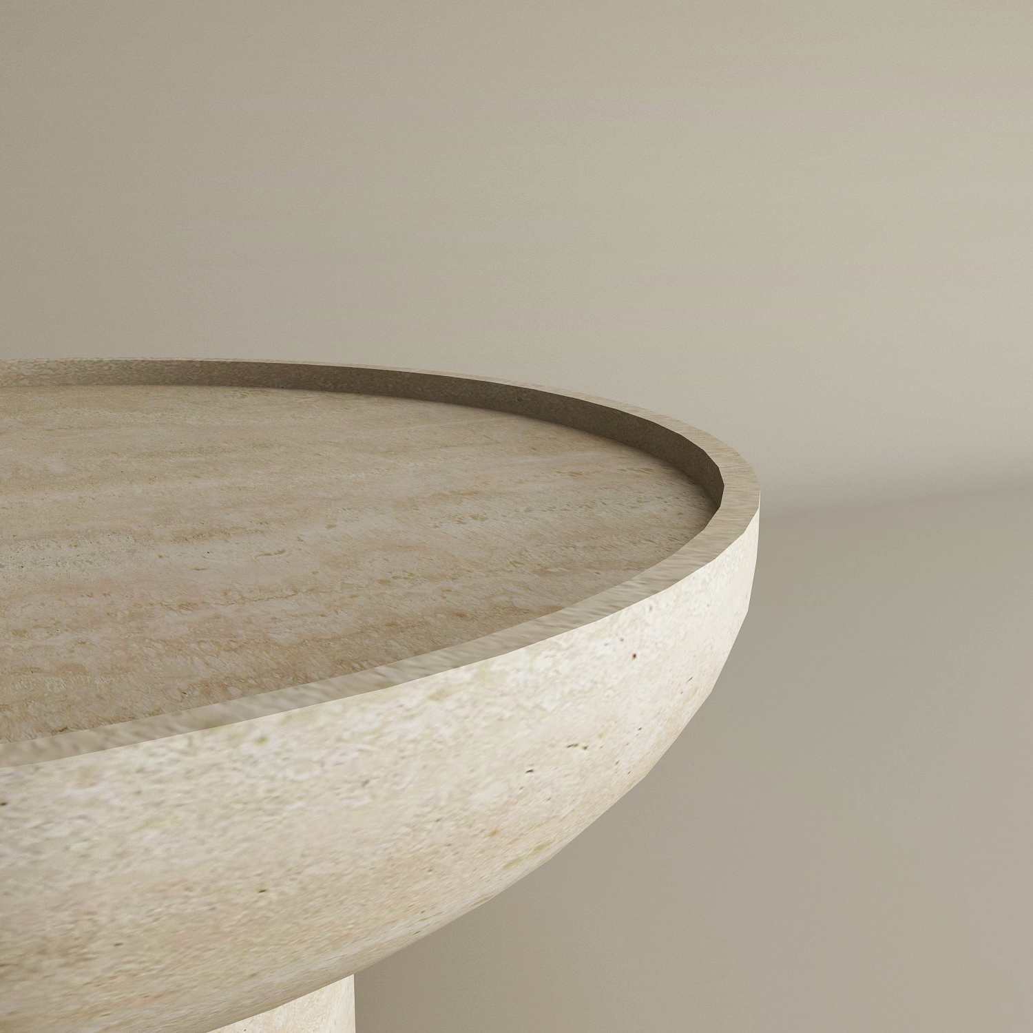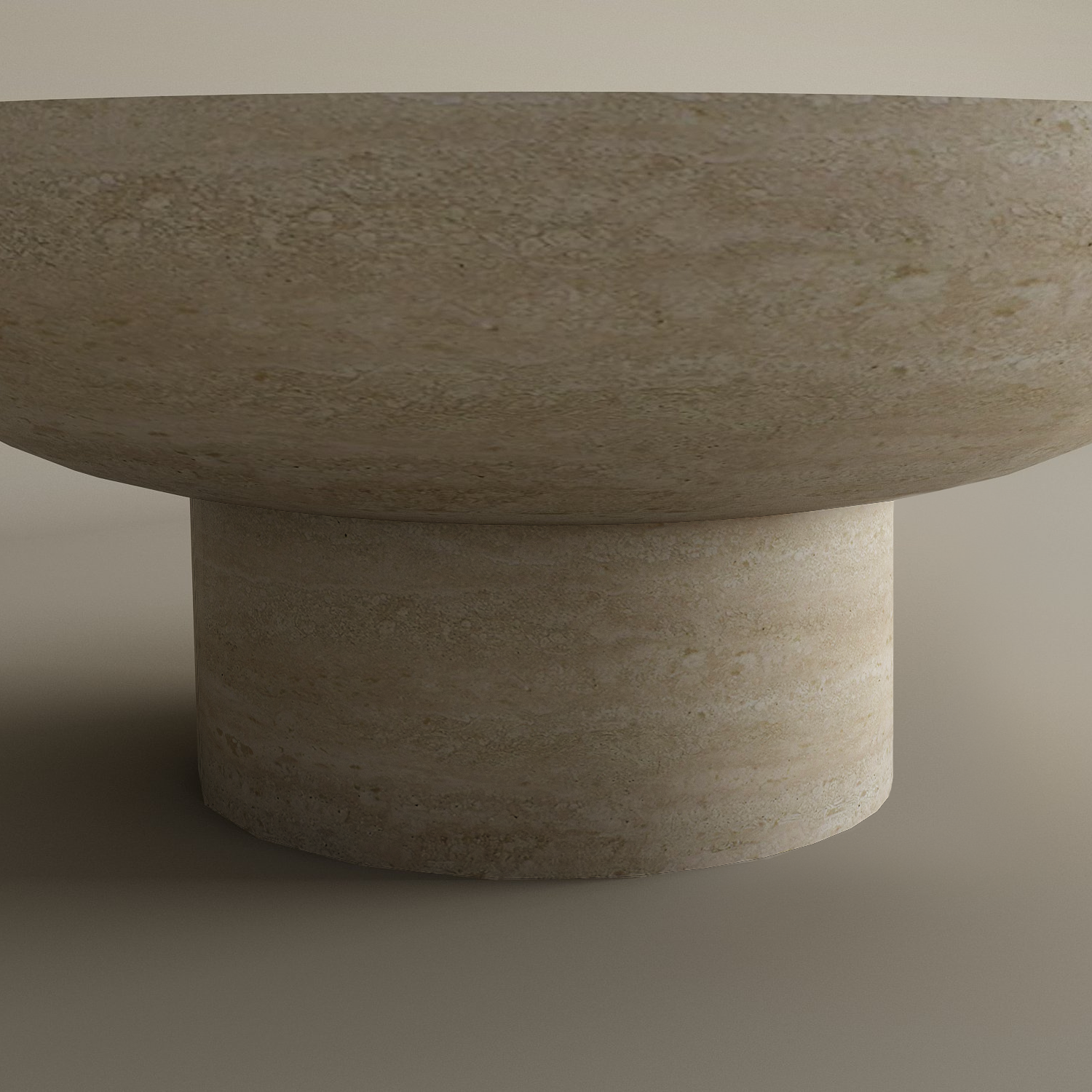 Invite a sense of calm and quiet strength to your home with this round travertine coffee table. Featuring a solid cylindrical base and measuring 31 inches (80 cm) in diameter and 14 inches (36 cm) in height, it’s the perfect place for slow mornings and meaningful moments. Hand-finished from real travertine stone, each piece tells a unique story of the earth's warmth and timeless beauty. Built to be both sculptural and enduring, this table seamlessly integrates into organic and minimalist living spaces, becoming a cherished part of your home.