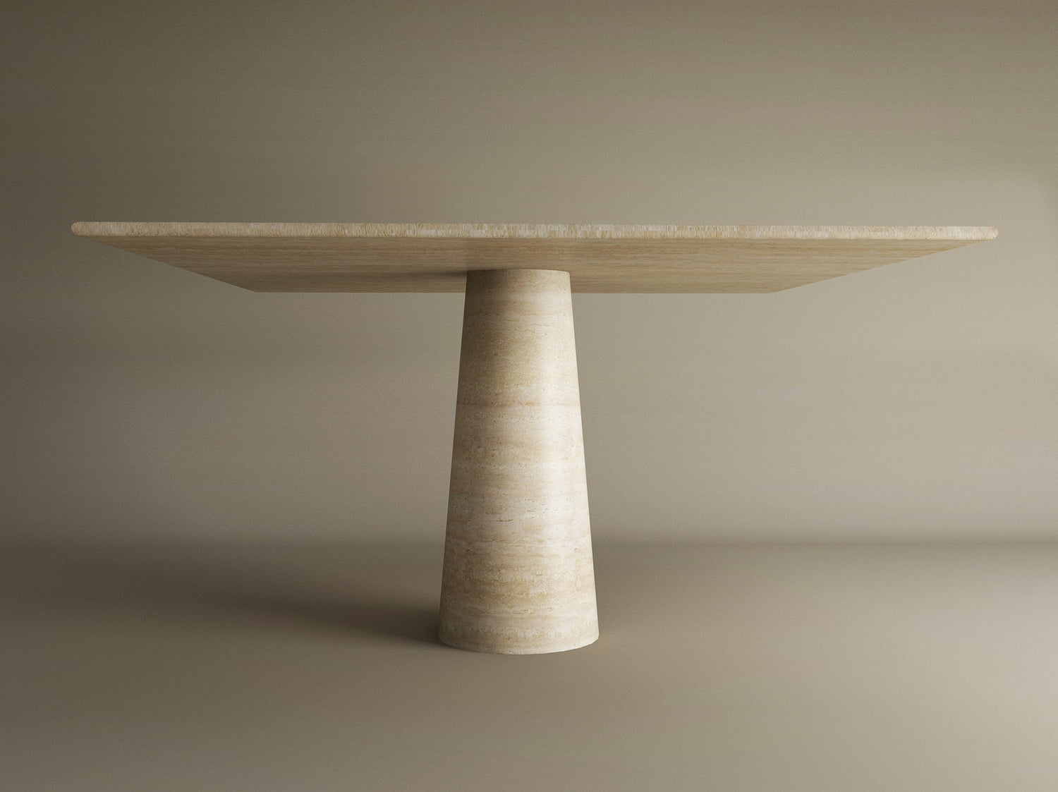 Square Travertine Dining Table with Conical Pedestal Base