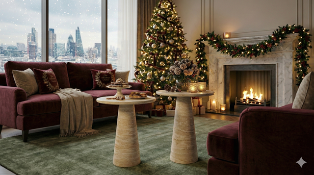 Tavolino Pietra Travertine Column Table – Classic European-Inspired Stone Design