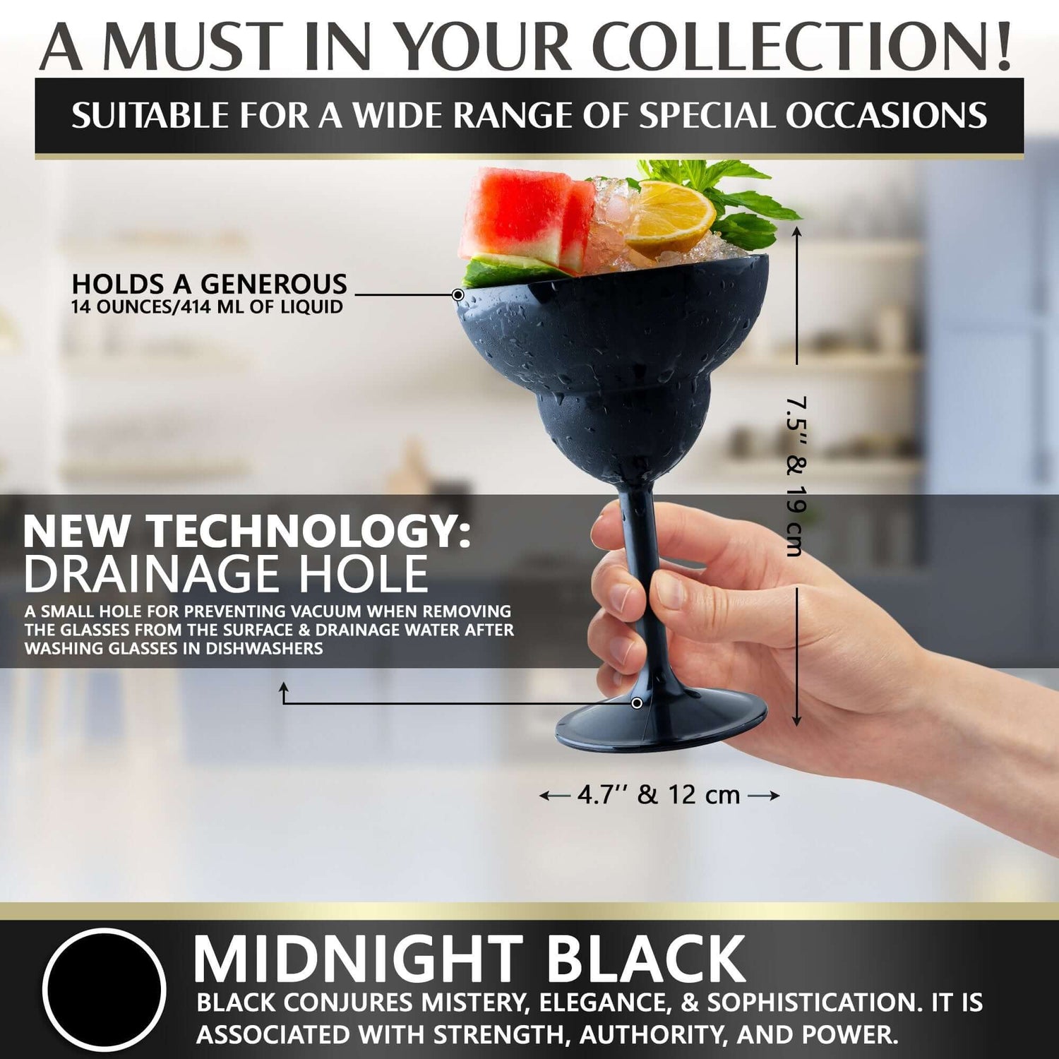 Unbreakable Margarita Glasses – 14oz Large Polycarbonate Drinkware for Cocktails, Tequila & More - SET OF 2 / Black is backordered and will ship as soon as it is back in stock.