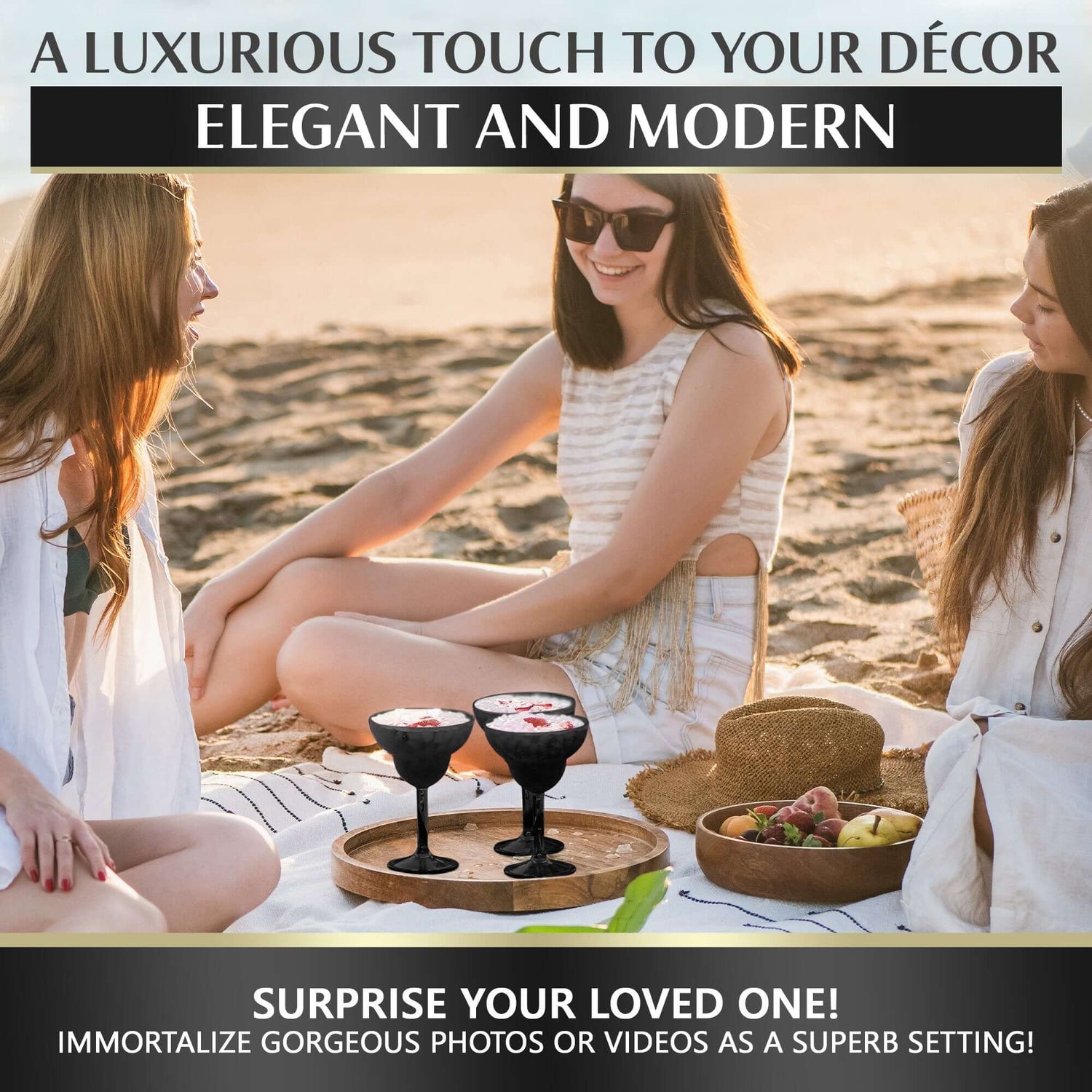 Designed for versatility, our polycarbonate margarita glasses are perfect for home bars, restaurants, beach vacations, poolside lounging, yacht parties, outdoor BBQs, and more. Unlike traditional glassware, these glasses are designed to withstand drops, making them an ideal choice for patios, picnics, and camping trips.